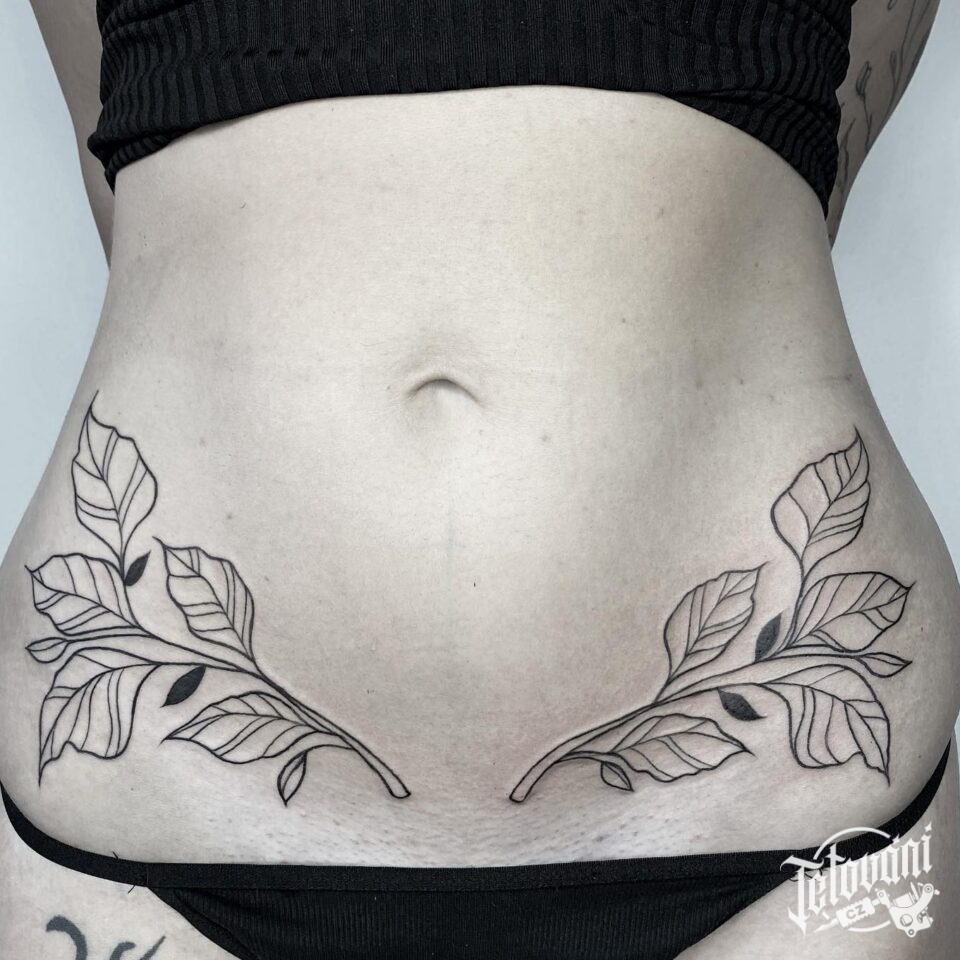 Tetování větvičky na břichu