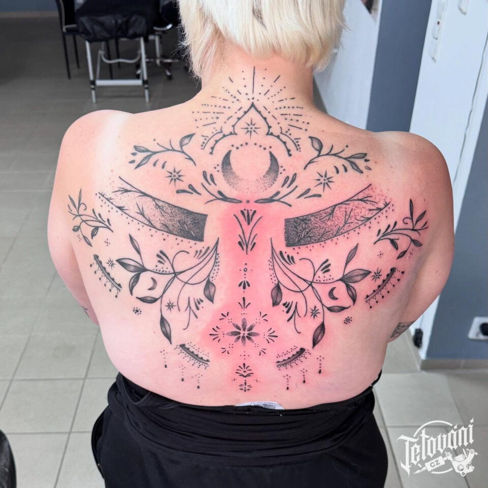 Tetování větvičky, ornamenty na záda