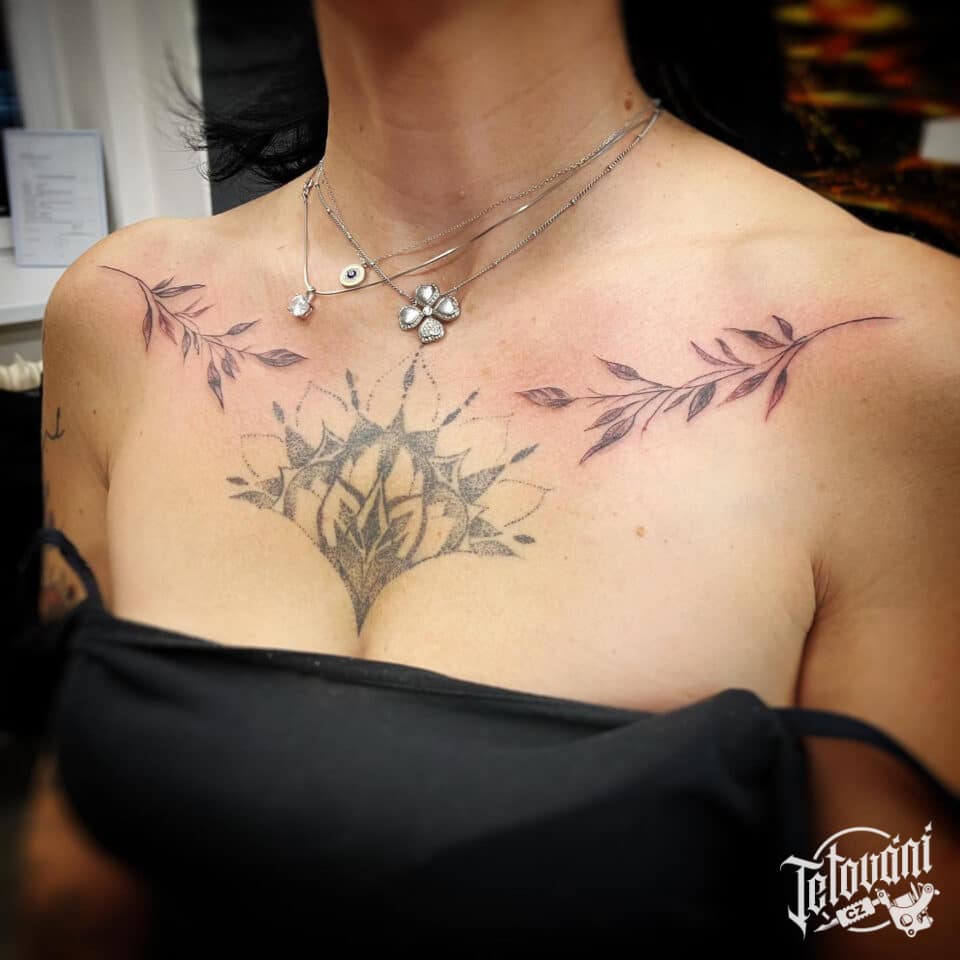 Tetování větvičky pod klíční kostí