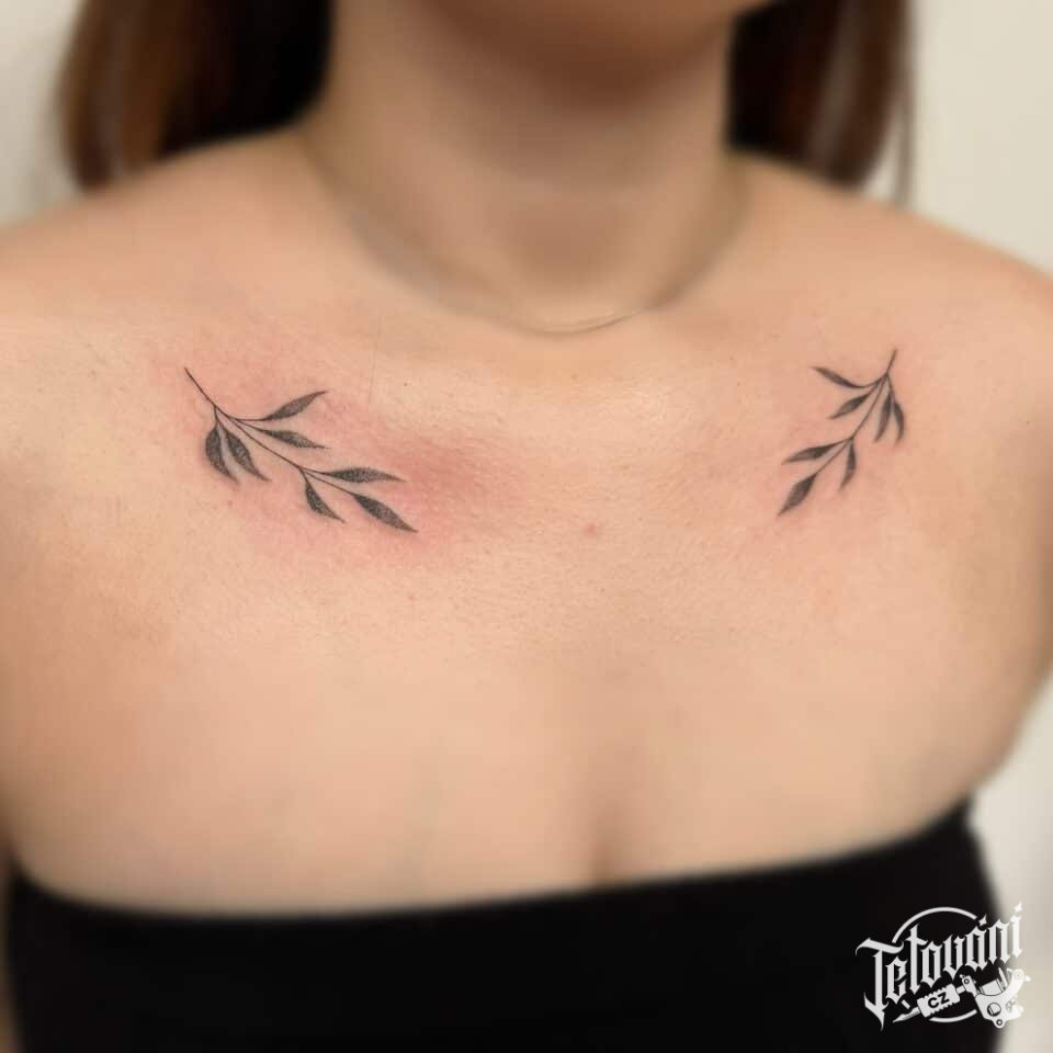 Tetování větvičky pod klíční kosti