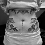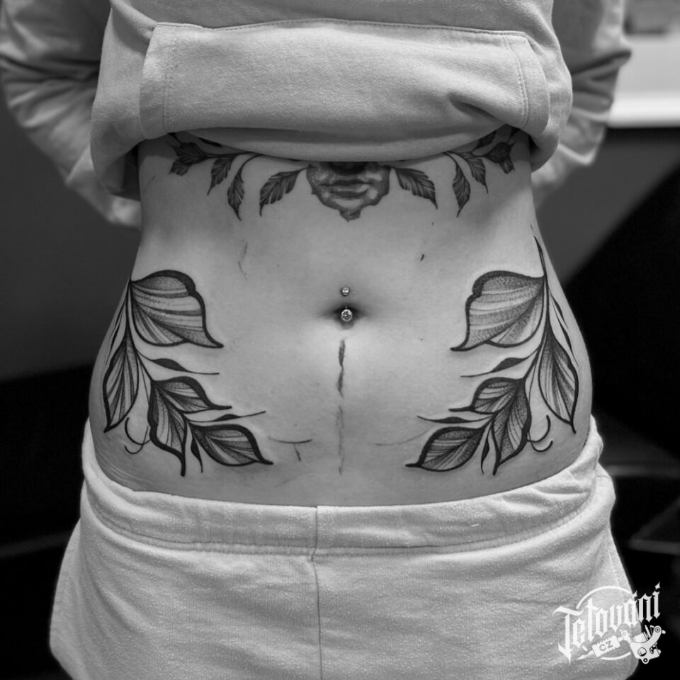 Tetování větvičky s listy, symboly na břicho
