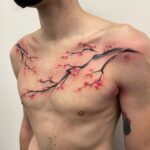 Tetování větvičky se sakurami na hrudníku