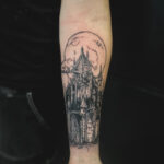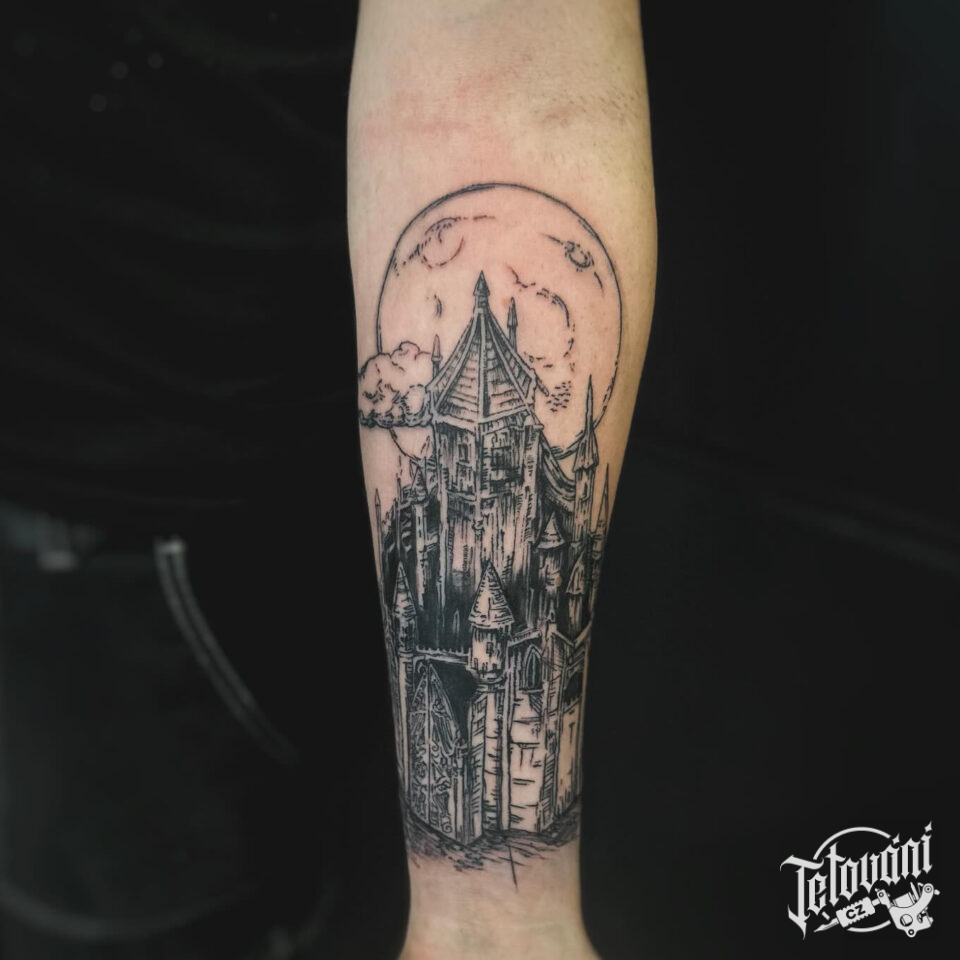 Tetování věž a měsíc na předloktí