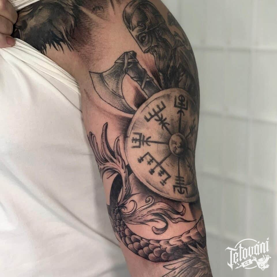 Tetování vikingové, znaky a symboly na rameni