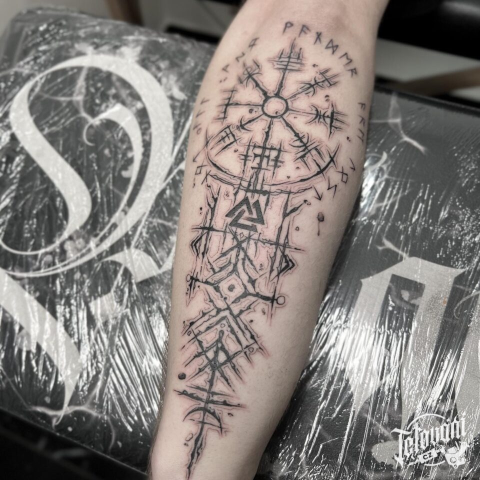 Tetování vikingské znaky a symboly na předloktí