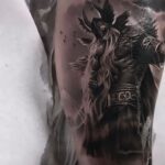 Tetování vikingský bojovník, severská mytologie na bok stehna