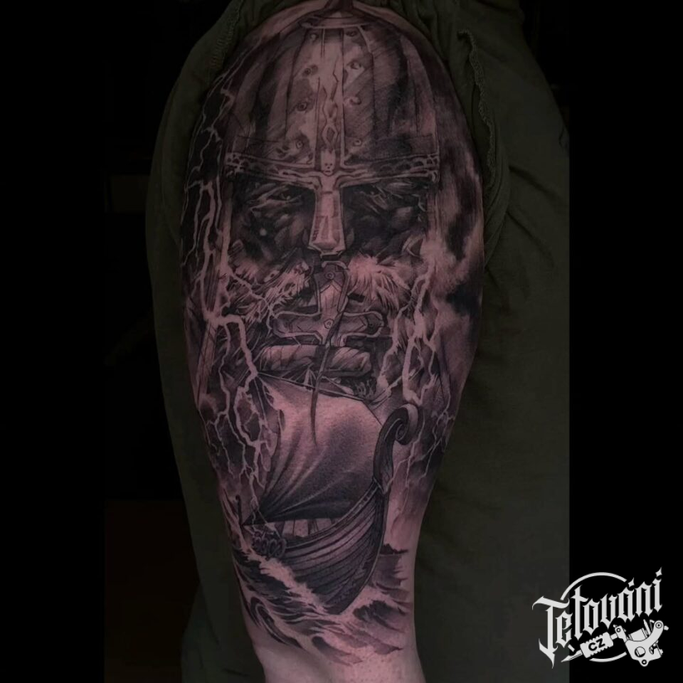 Tetování vikingský bojovník, severská mytologie na rameno