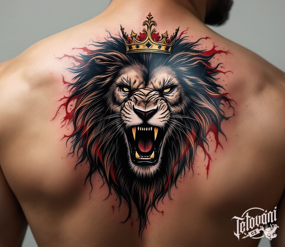 Tetování vlastenecké, české tetování, český lev s korunou na záda