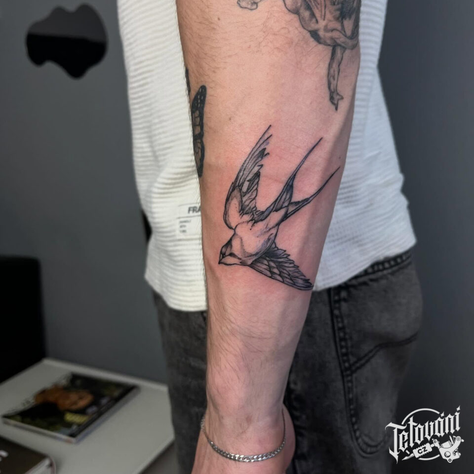 Tetování vlaštovka na předloktí