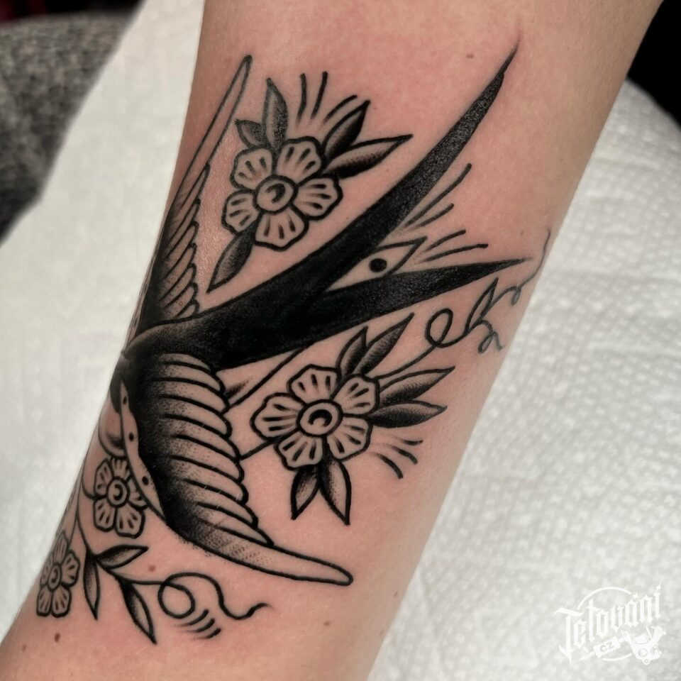 Tetování vlaštovka na předloktí