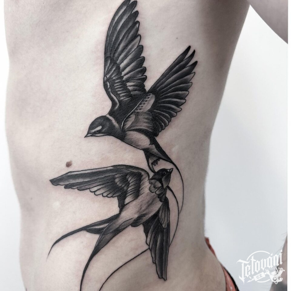 Tetování vlaštovka, zvíře na bok