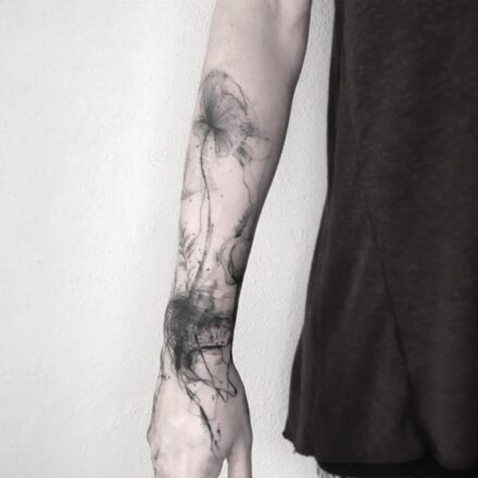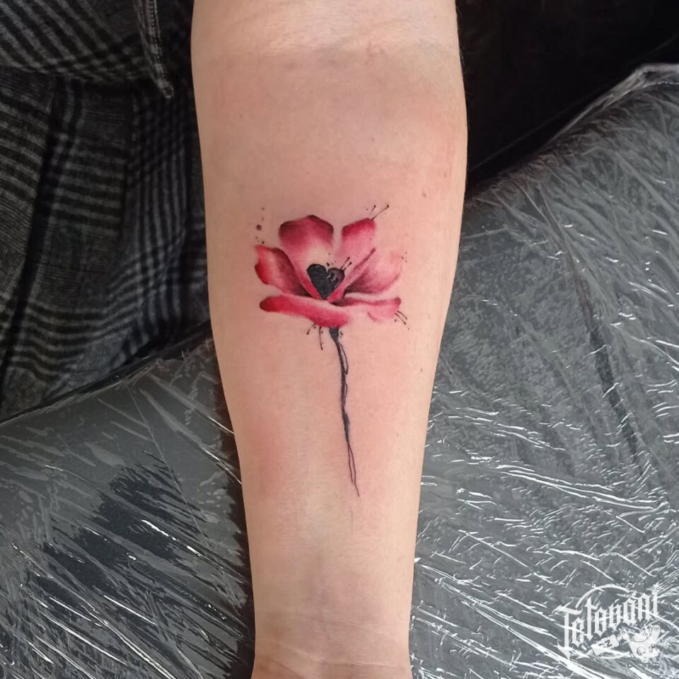 Tetování vlčí mák, květina na předloktí
