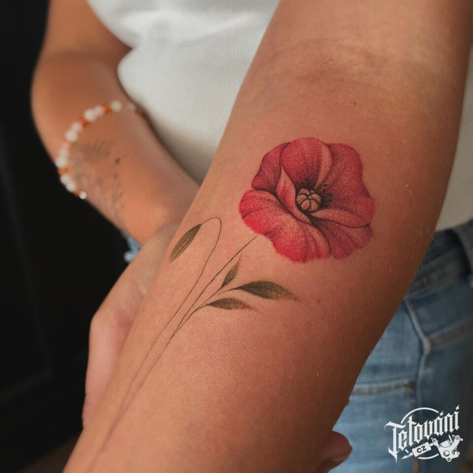 Tetování vlčí mák, květina na předloktí