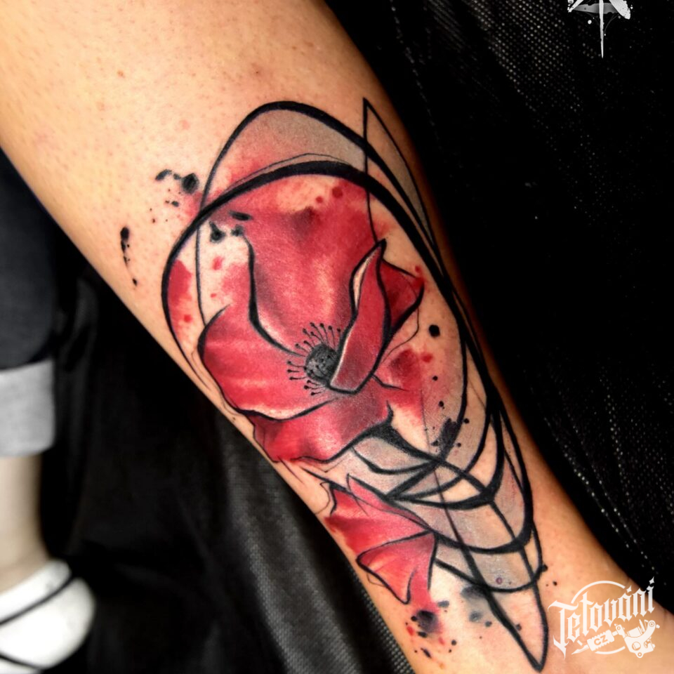 Tetování vlčí mák, květiny na předloktí