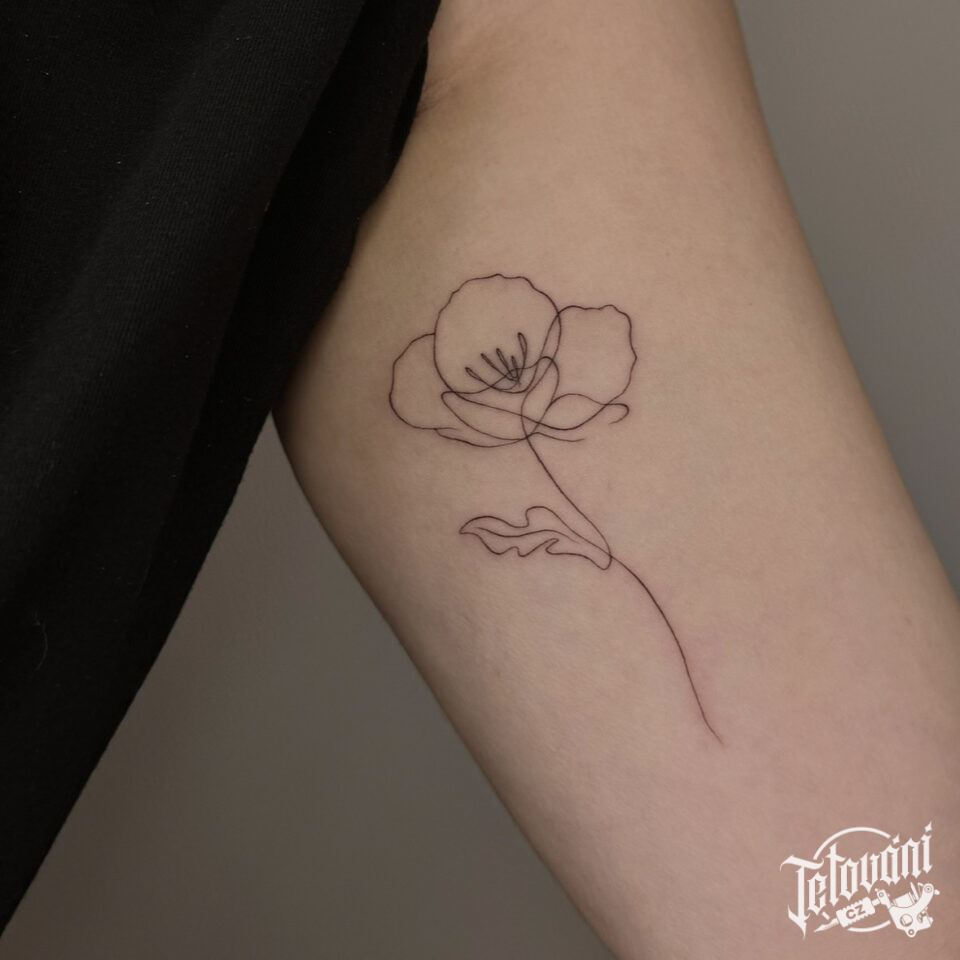 Tetování vlčí mák, luční kvítí, květina na rameno