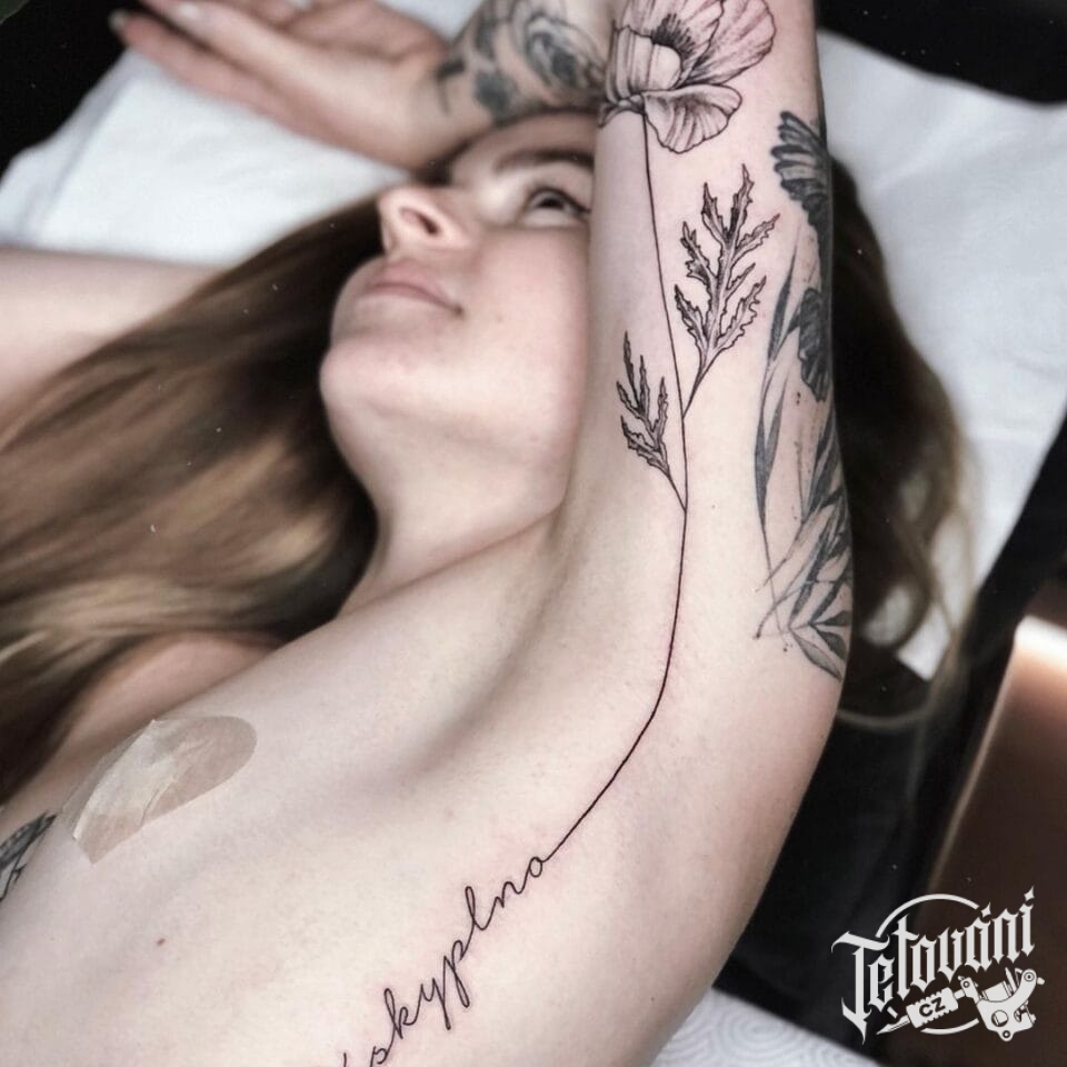 Tetování vlčí mák na bok hrudníku a paže