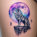 Tetování vlk a Měsíc na stehně