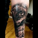 Tetování vlk, les na předloktí