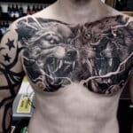Tetování vlk, lev na prsa