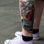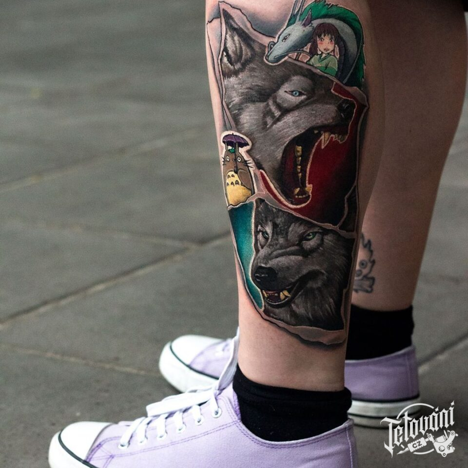 Tetování zvířata, vlk na lýtku