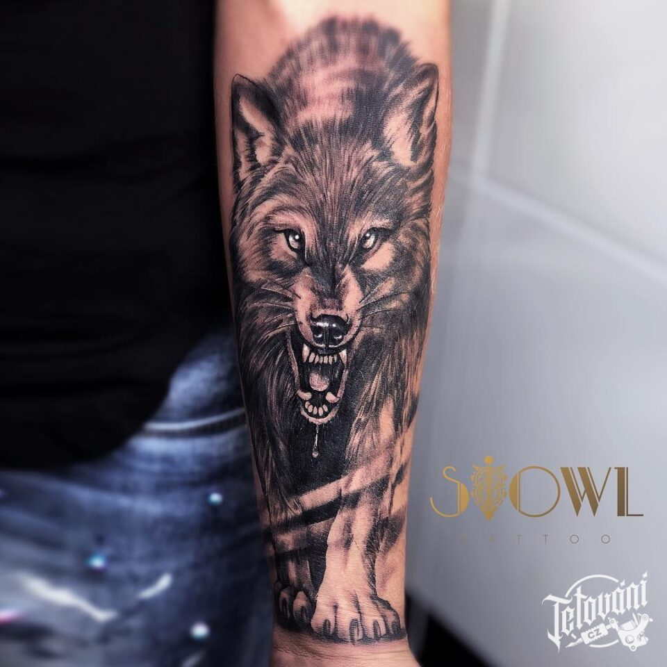 Tetování vlk na předloktí