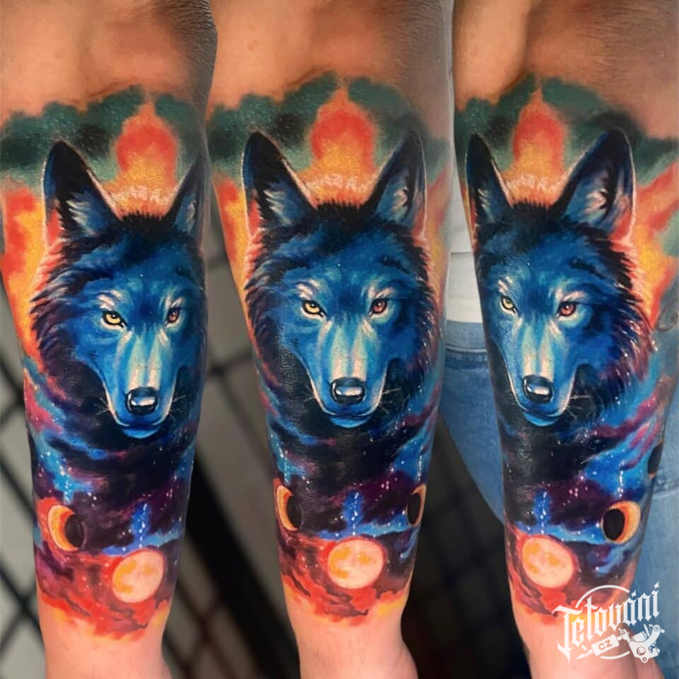 Tetování vlk na předloktí