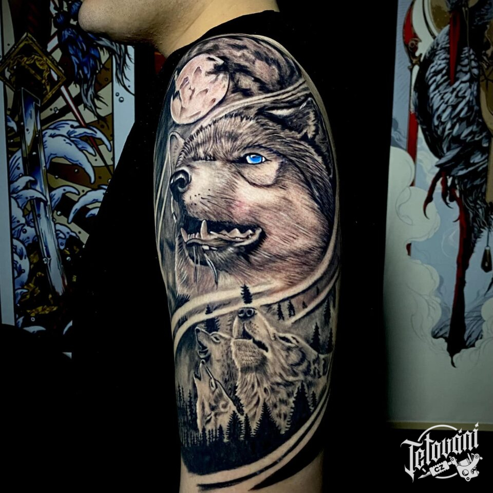 Tetování vlk na rameni
