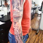 Tetování vlk, portrét, lebka, nápisy rukáv