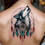 Tetování vlka s lapačem snů na záda