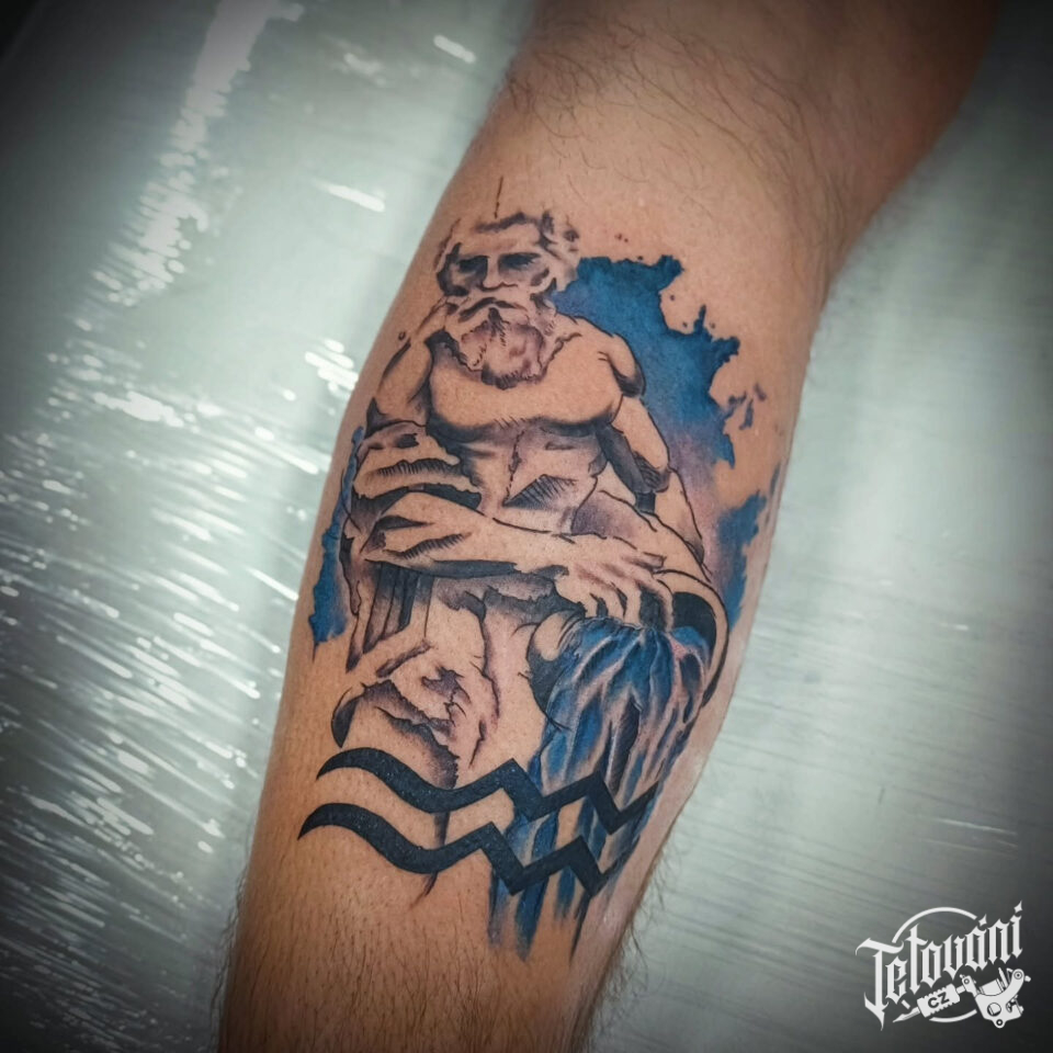 Tetování vodnář znamení zvěrokruhu na lýtku