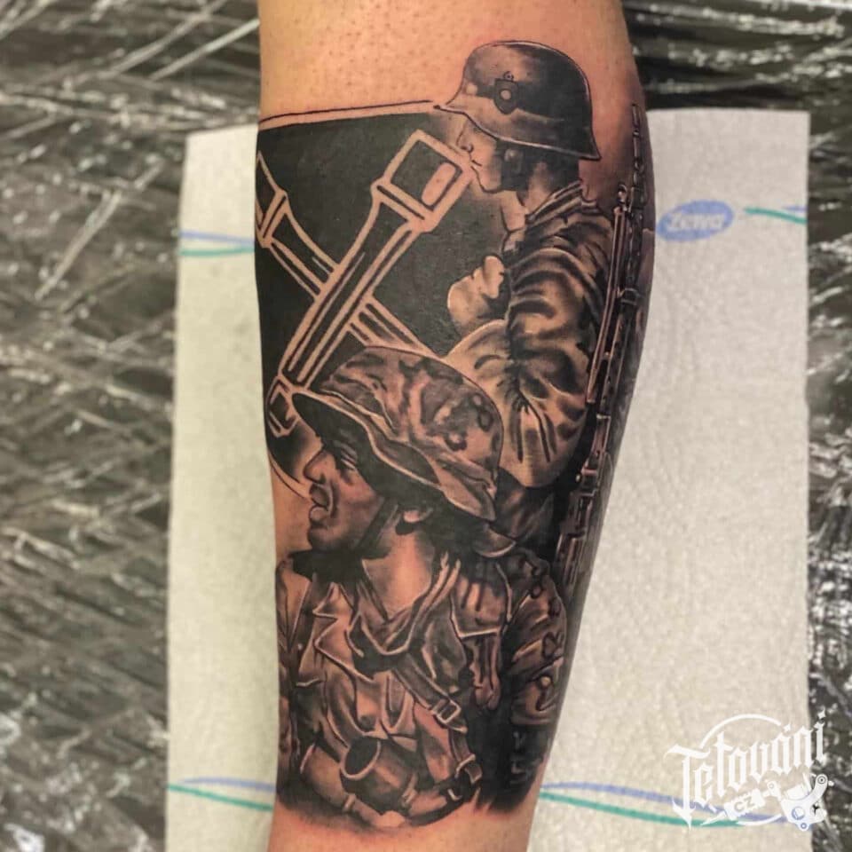 Tetování vojáci na lýtku