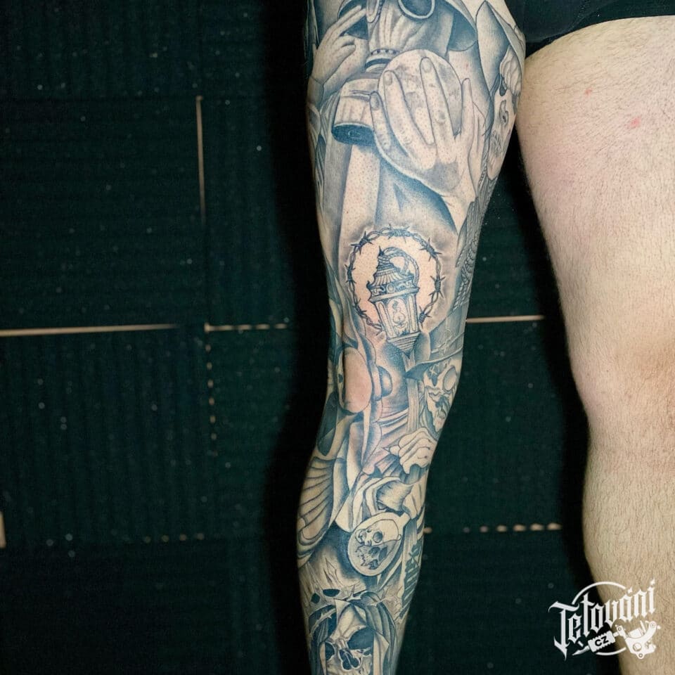 Tetování vojáci, smrt, kostra na nohu