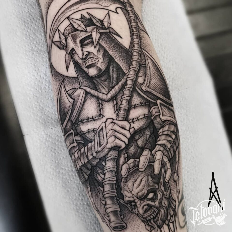 Tetování voják bojovník na lýtku