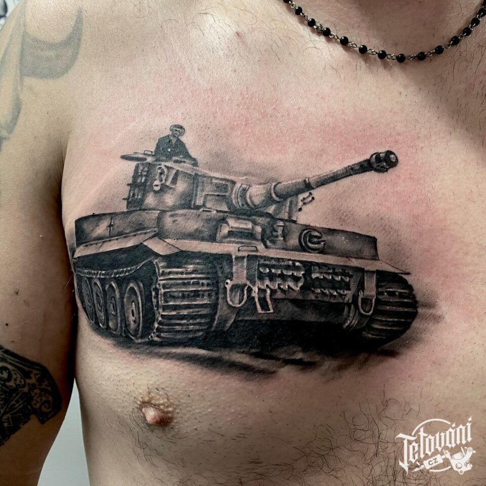 Tetování vojenský tank na hrudi