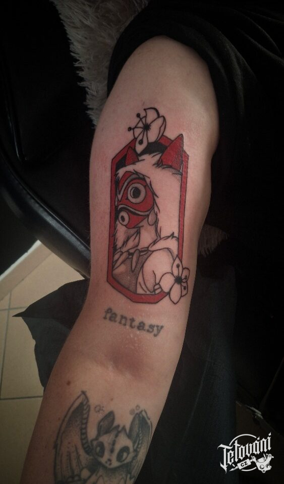Tetování z anime filmů a pohádek princezna Mononoke, postavičky na rameno
