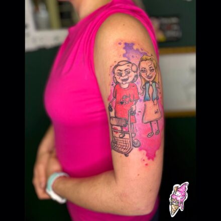 Tetování z film a pohádek, postavičky z Já padouch na předloktí