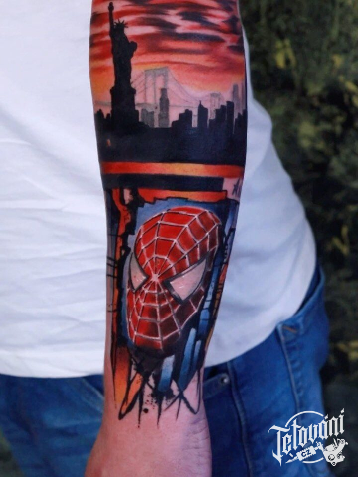 Tetování z filmů a pohádek Spiderman předloktí