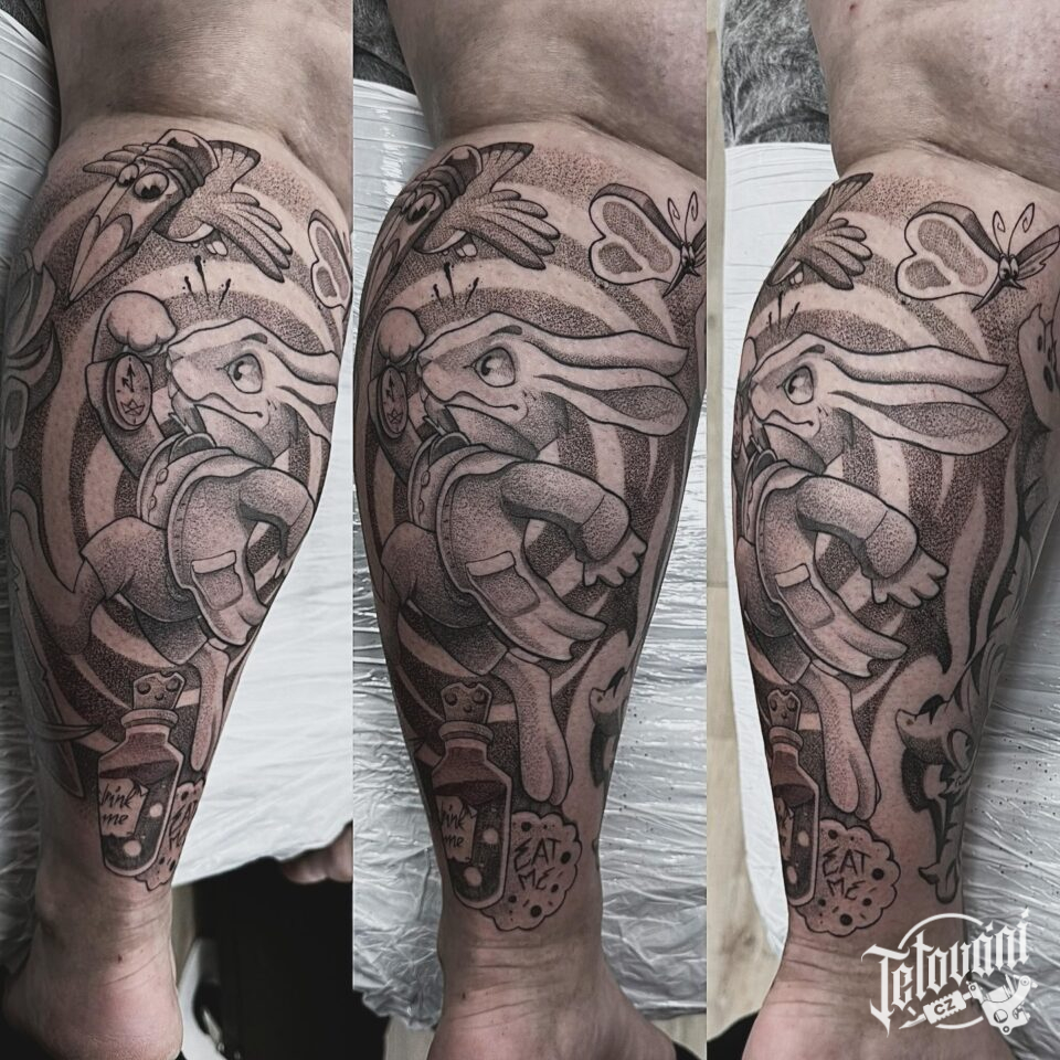 Tetování z filmů a pohádek, Alenka v říši divů na lýtku