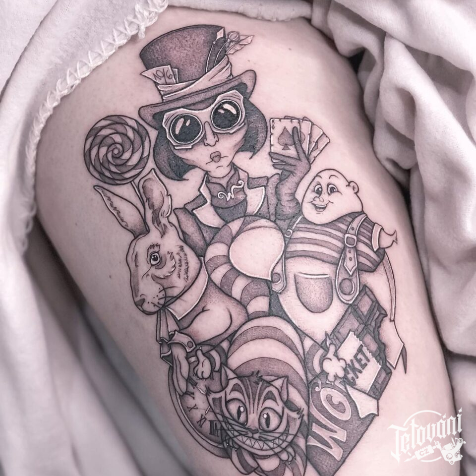 Tetování z filmů a pohádek, Alenka v říši divů na stehně