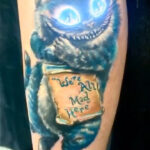 Tetování z filmů a pohádek Alenka v říši divů postavička kocour na lýtko