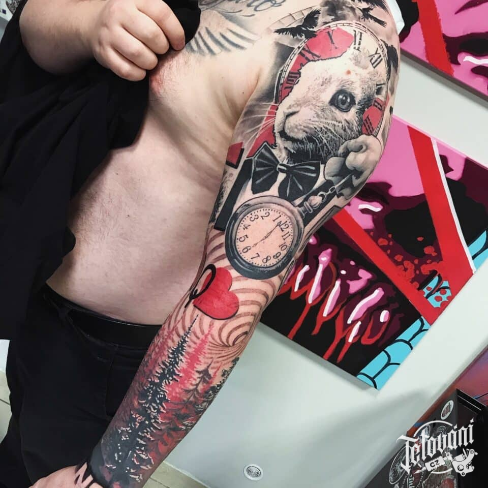 Tetování z filmů a pohádek Alenka v říší divů, příroda, les na ruku