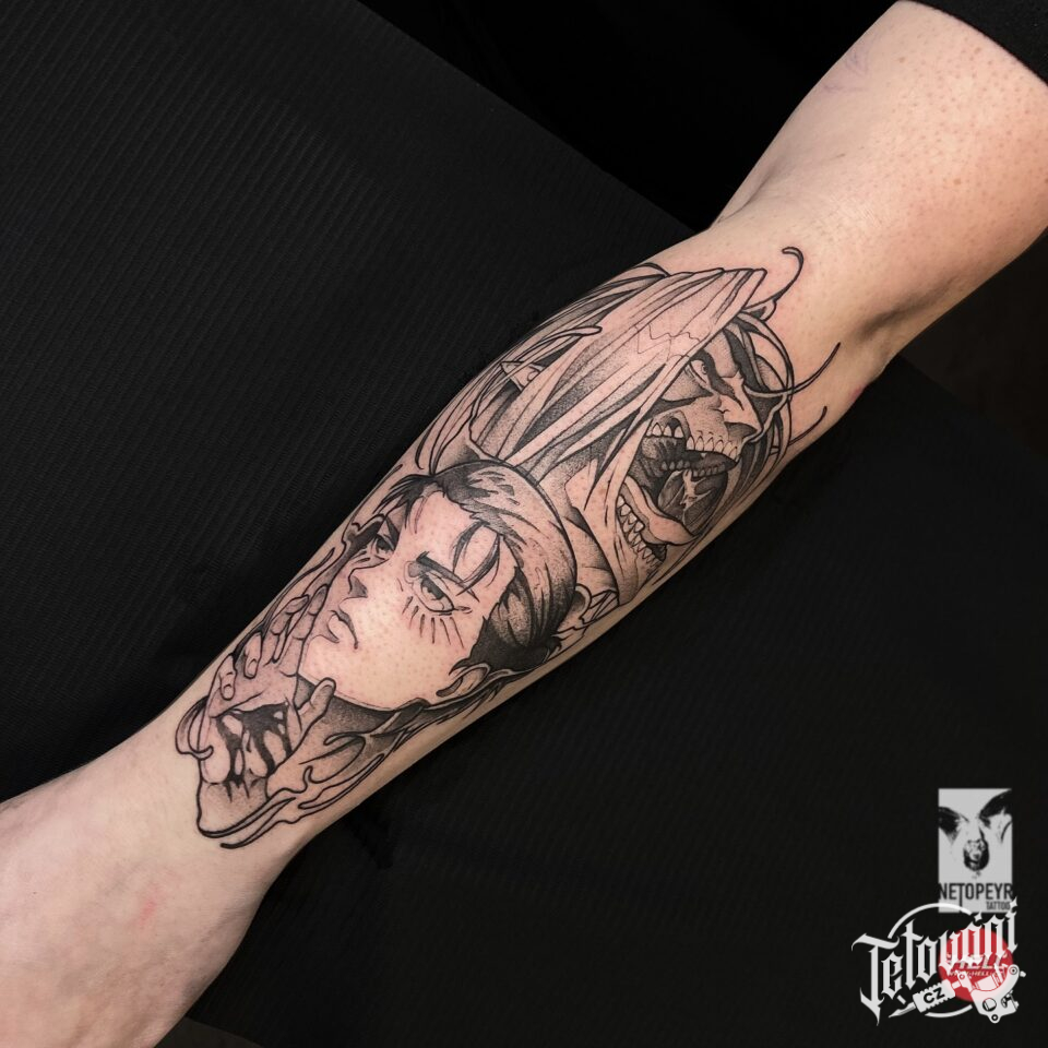 Tetování z filmů a pohádek anime Attackontitan na předloktí