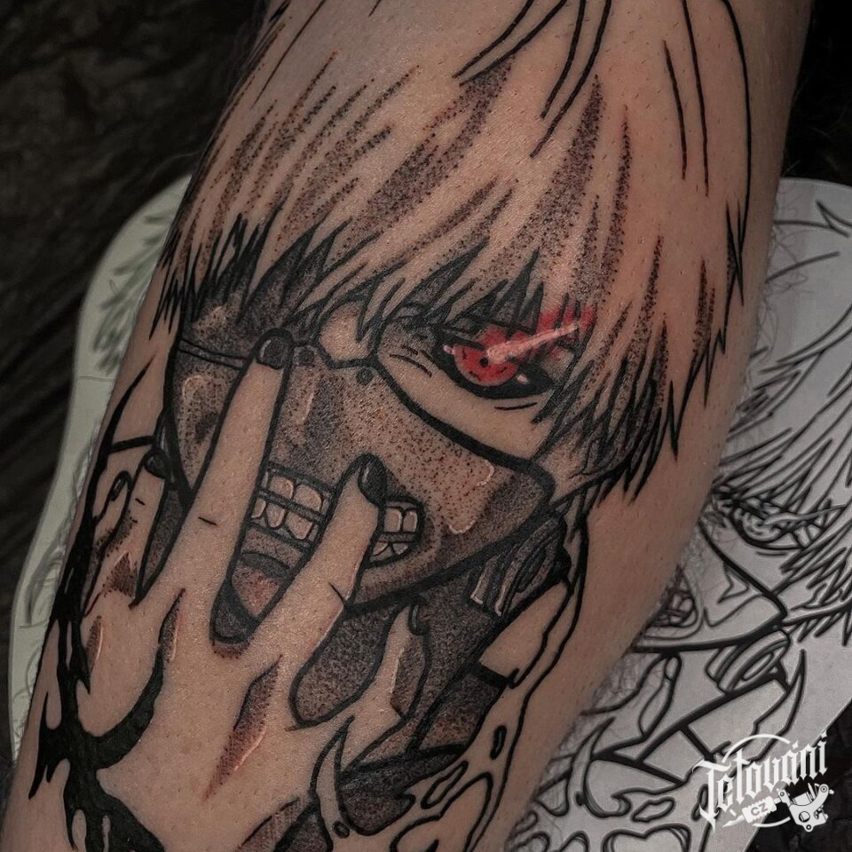 Tetování z filmů a pohádek, anime, Ken Kaneki na lýtku