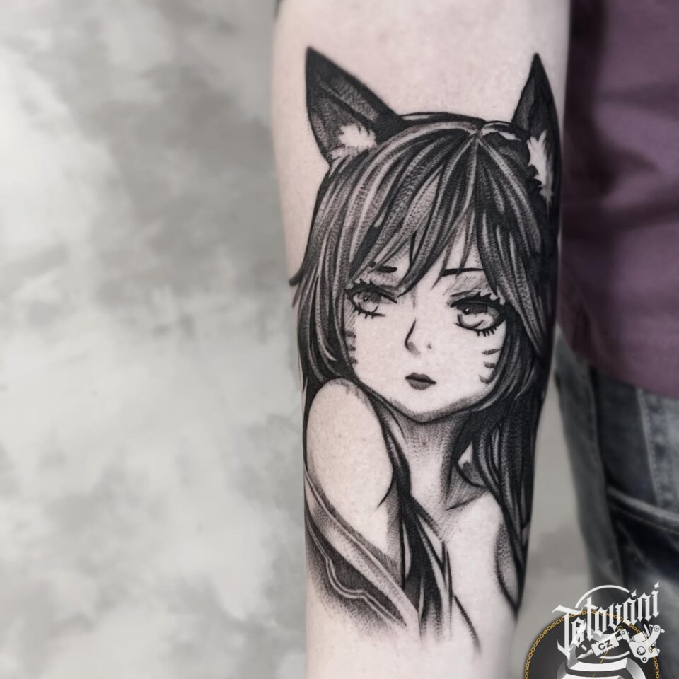 Tetování z filmů a pohádek, anime kočko-holka na předloktí