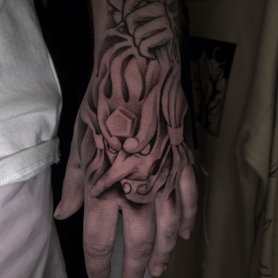 Tetování z filmů a pohádek anime na hřbetu ruky
