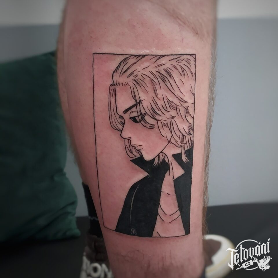 Tetování z filmů a pohádek anime na lýtku