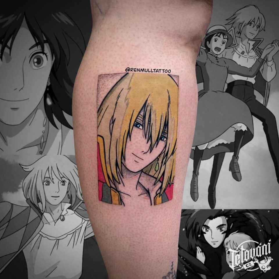 Tetování z filmů a pohádek anime na lýtku