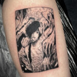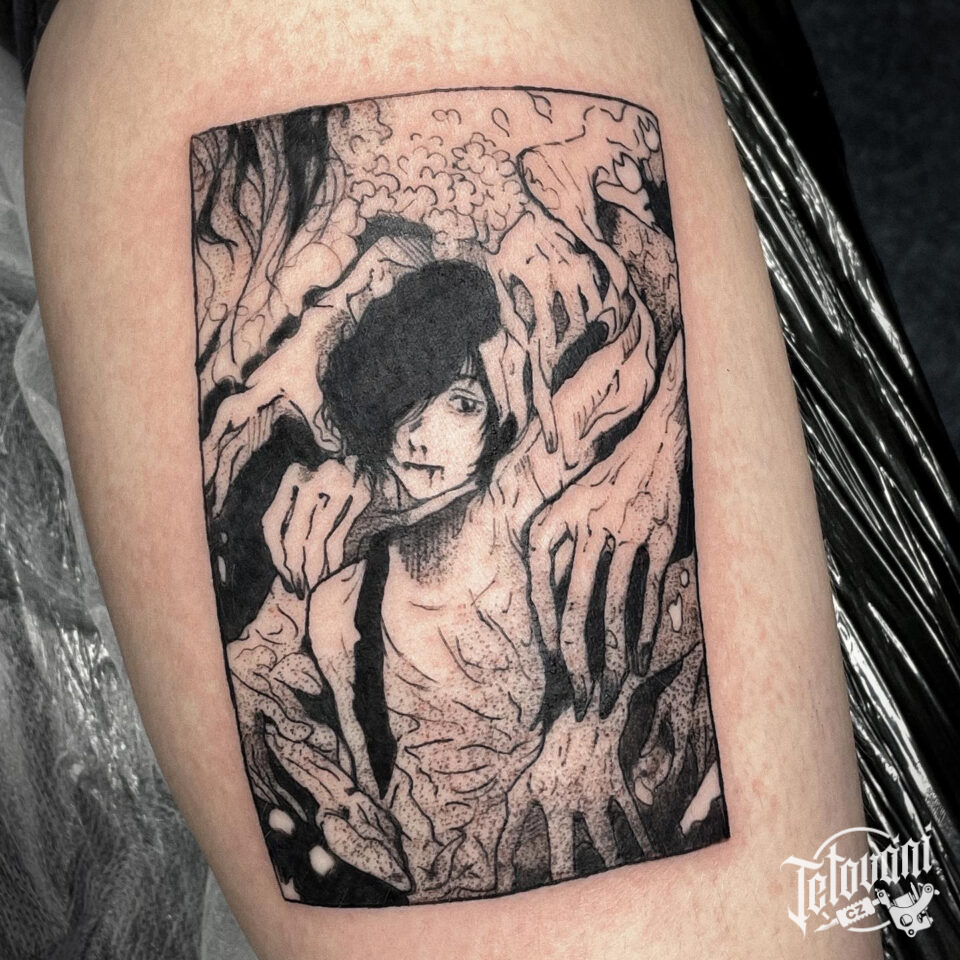 Tetování z filmů a pohádek anime na lýtku