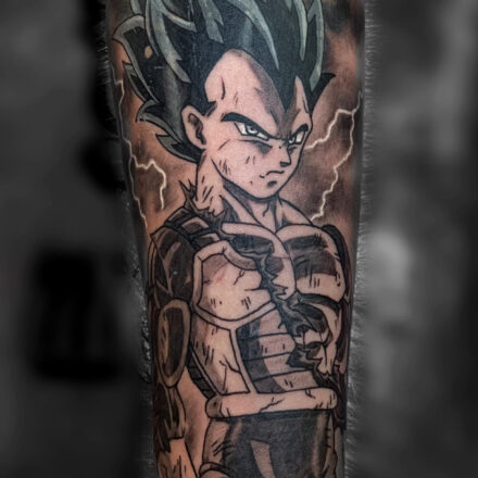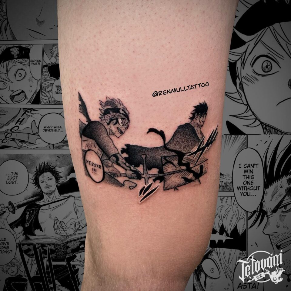 Tetování z filmů a pohádek anime na stehně