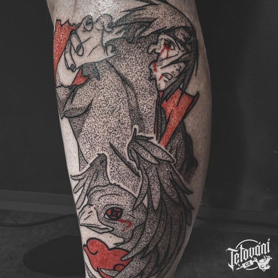 Tetování z filmů a pohádek, anime, Naruto, Itachi Uchiha na lýtku